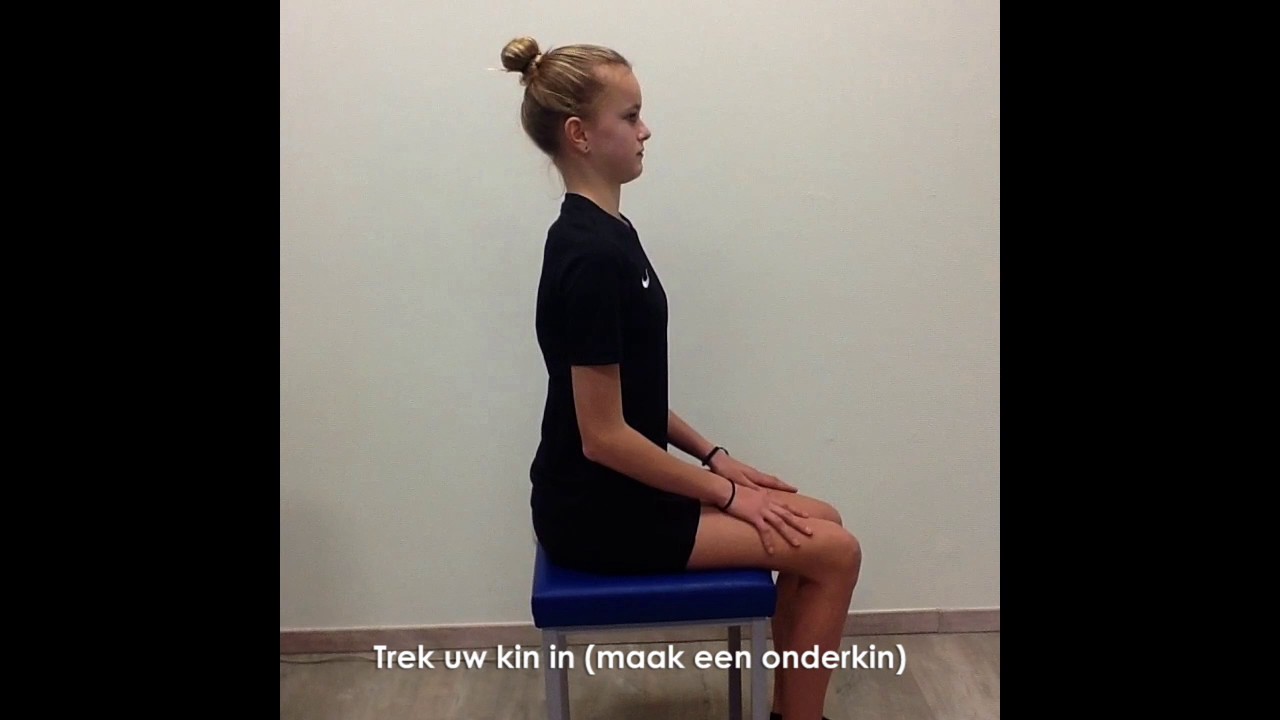 Een ergonomische houding met een geschikte bureaustoelen. Stevige handdoek en 2 balletjes. Diepe nekflexoren mobiliseren Dit is een oefening om de coördinatie van de nekspieren te trainen.
